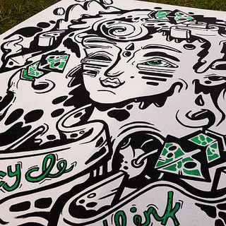 Drawing on our ever-changing social scene and diverse contemporary culture I use a fine blend of intelligent thinking, creative wizardry and some common sense to create images that reflect the modern world. I emphasize beauty, highlight predicaments and poke fun at humans and their strange habits. Abstract forms transcend through line and delicately selected compositions to create pieces that grace the streets, leaves a distinct mark on found objects and decorates paper in stylized way.
