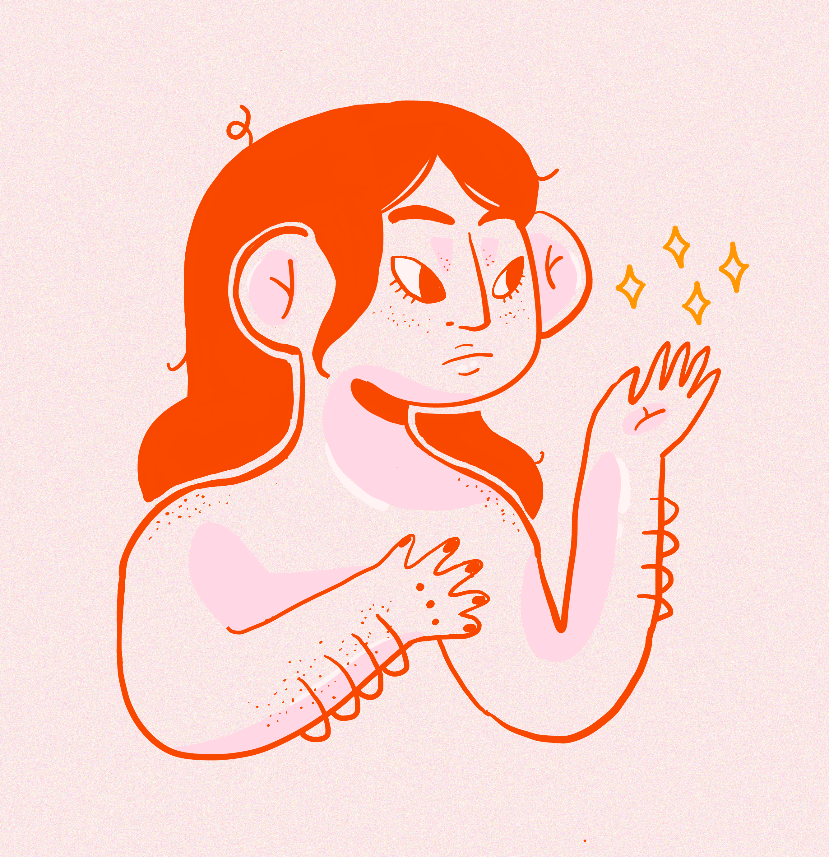 Her art emanates feelings of childishness yet it delves into such complexities as body image, self esteem, feminism, mental health, and many more intricate topics involving young girls and women. She mainly works digitally on her pieces but does not shy away from traditional media such as printmaking inks or markers in her sketchbook illustrations.